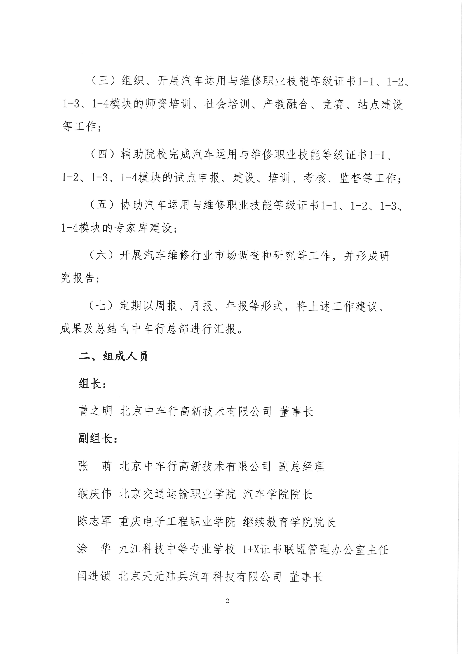 北京中车行高新技术有限公司汽车运用与维修职业技能等级证书汽车机电维修技术工作组建设方案(试行)