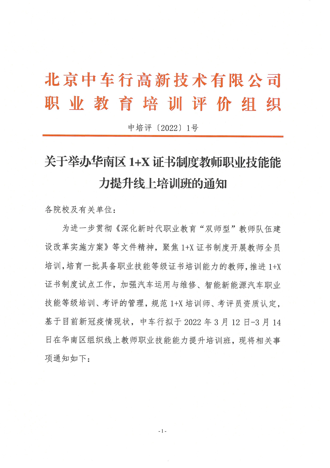 关于举办华南区1+X证书制度教师职业技能能力提升线上培训班的通知